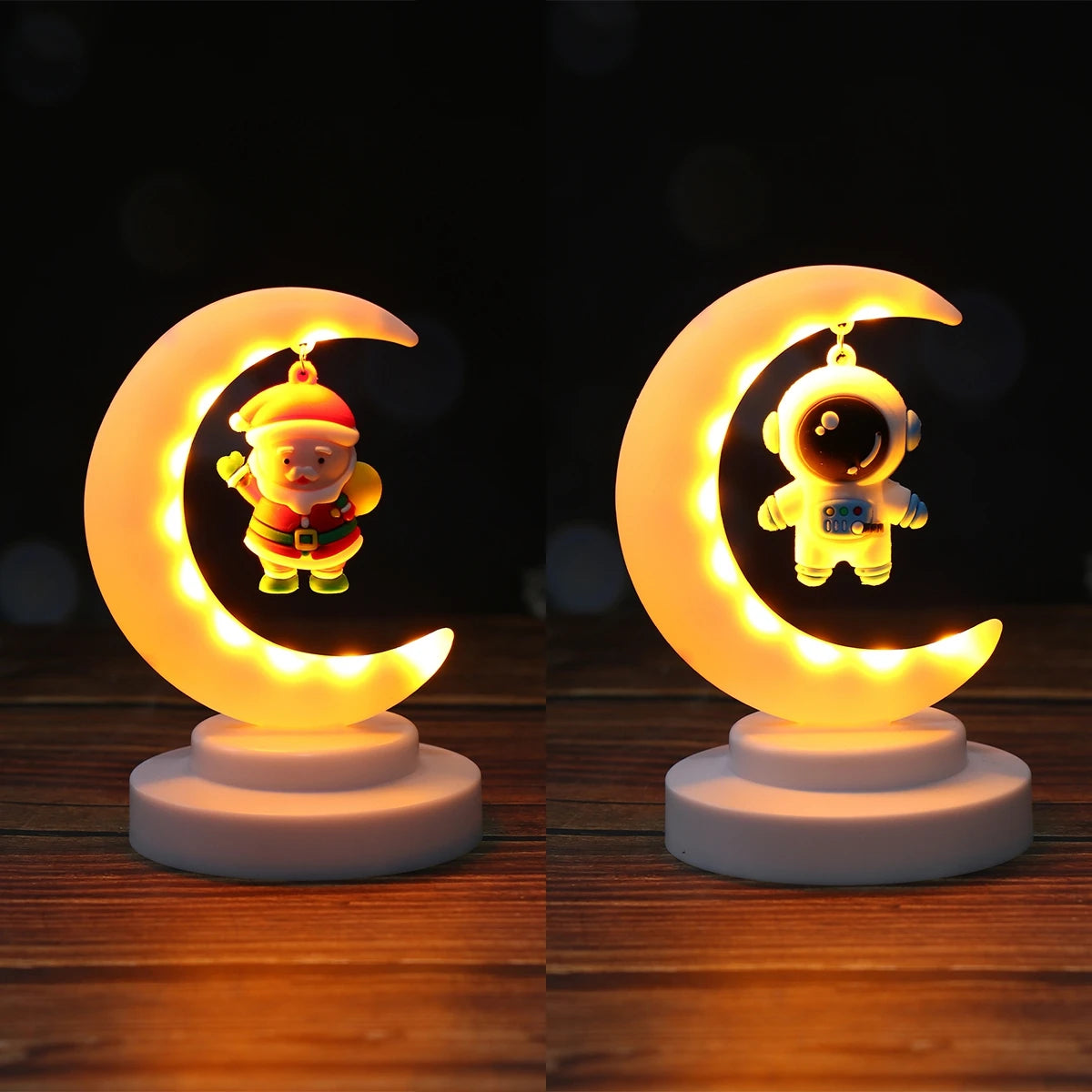 Traga a magia do Natal para o quarto dos seus pequenos com as nossas Luzes de Natal LED Decorativas! Com um design encantador de Pai Natal sentado na lua, estas lâmpadas de mesa criam uma atmosfera aconchegante e alegre, perfeita para a época festiva. Ideais para iluminar o espaço com uma luz suave e confortável, tornam-se também numa excelente opção de presente natalício. Perfeitas para decorar mesas, secretárias ou prateleiras, estas luzes não só encantam as crianças, como também acrescentam um toque festivo ao seu lar. Celebre o Natal com brilho e alegria!